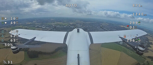 I mention this because I have attached the FPV camera to the vertical stabilizer and can see the quad propellers.