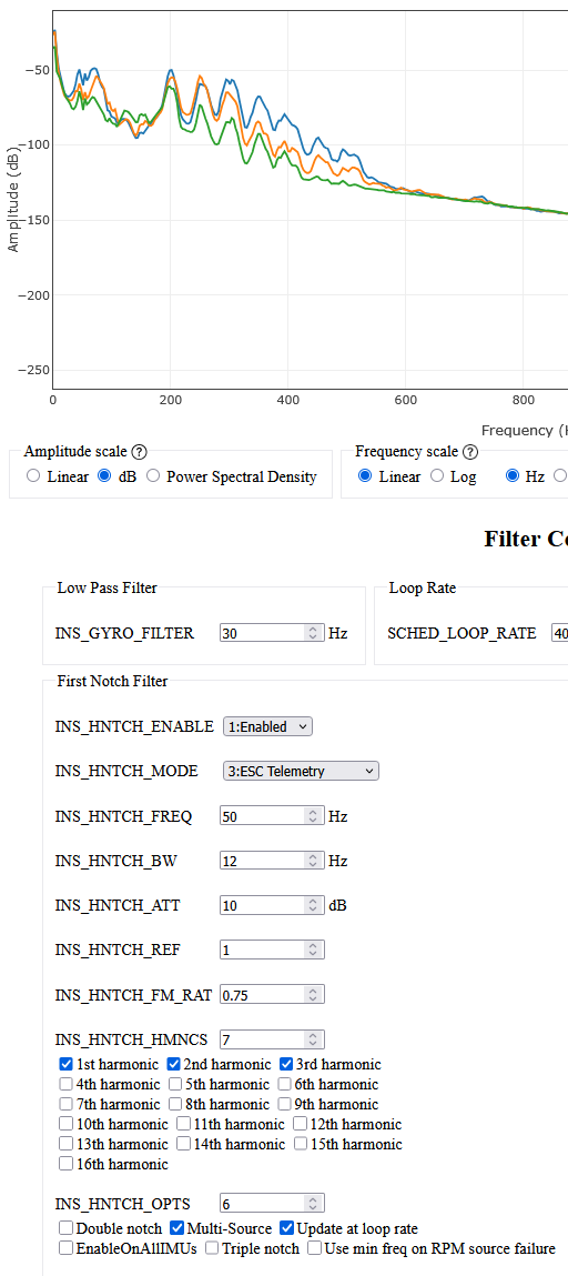 Can you explain why you prefer DShot600 here? My understanding is that the main advantage is lower telemetry latency, but at typical large-prop blade-pass frequencies (~80–120 Hz), the ~13 µs difference between DShot300 and 600 is a tiny fraction of a vibration cycle. That makes me think DShot300 should still be more than adequate while being more robust. I’m interested to hear if there’s something I’m missing or a case where 600 clearly helped.