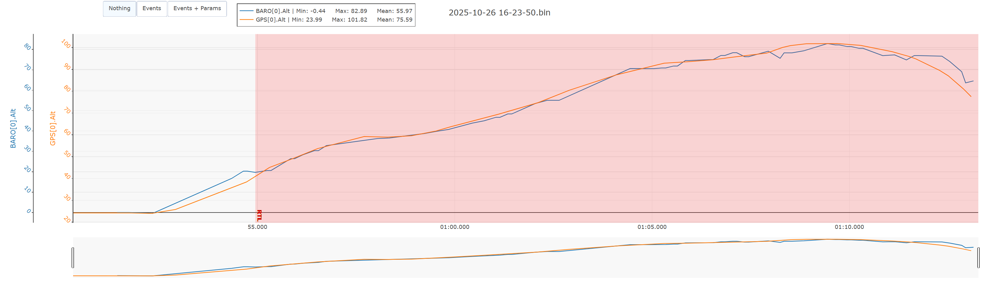 GPS Alt appears to track fairly closely with Baro alt, and correlates well with the DVR, disregarding faulty altitude data such as too high reading making the wing dive to reach setpoint.