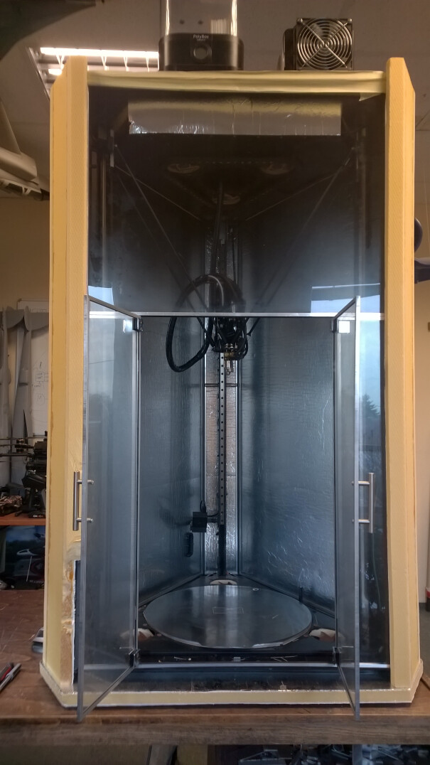 I had to build a larger 3D Delta printer according to my design “700mm height, 400mm printing diameter” with a heated chamber at 60 degrees Celsius and especially let the finished print cool down as gradually as possible to eliminate the natural internal tension of the material.