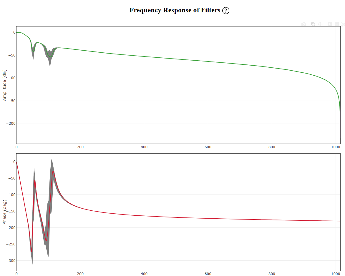 The gray shadows are simply how much the notch filters have moved through the part of the log you’re looking at and are just an indication to help you see how the phase delay and gain change throughout the flight. They’re neither good nor bad, but should be used as a check to see if the notch filters are tracking too low for your liking.