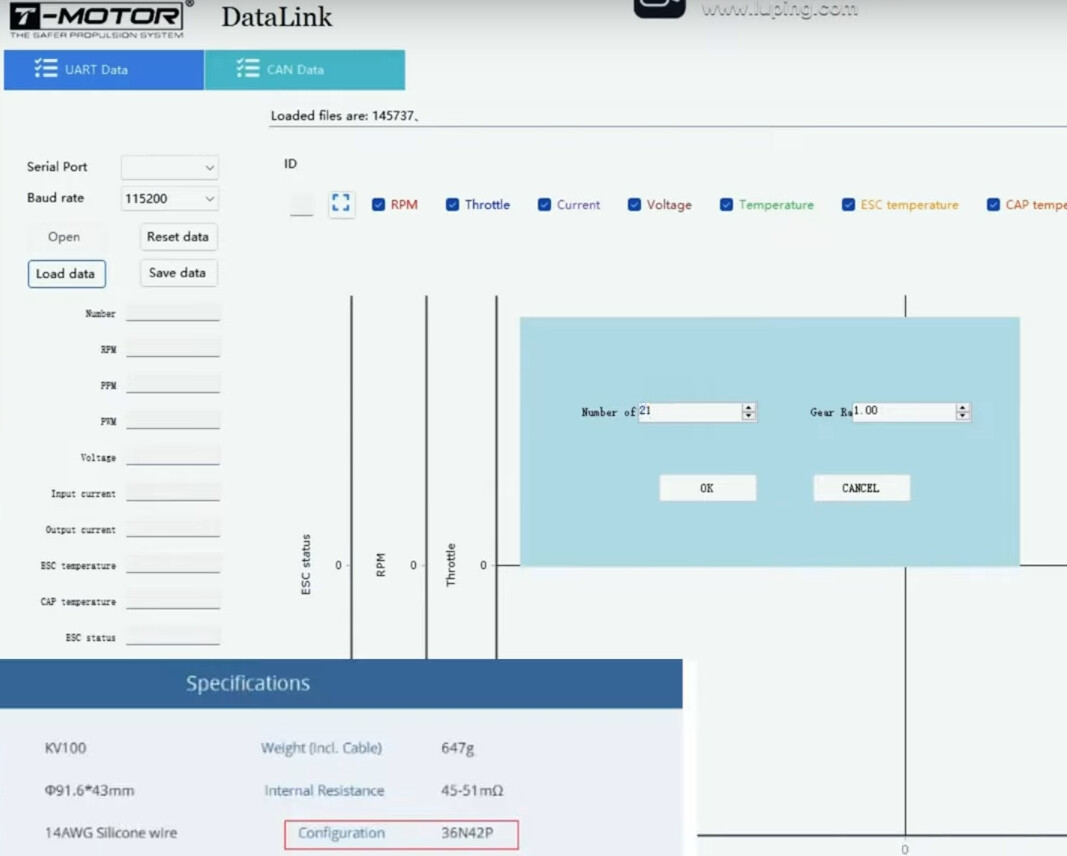 I have no direct experience with these data links but the results look similar to when the pole count is wrong. Does 1500 RPM make sense with the Motor kV and voltage?