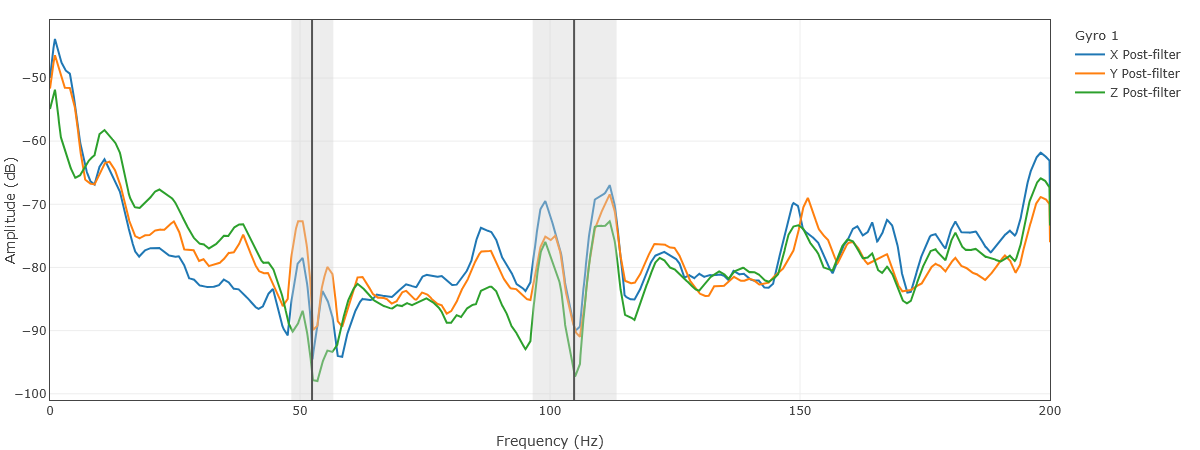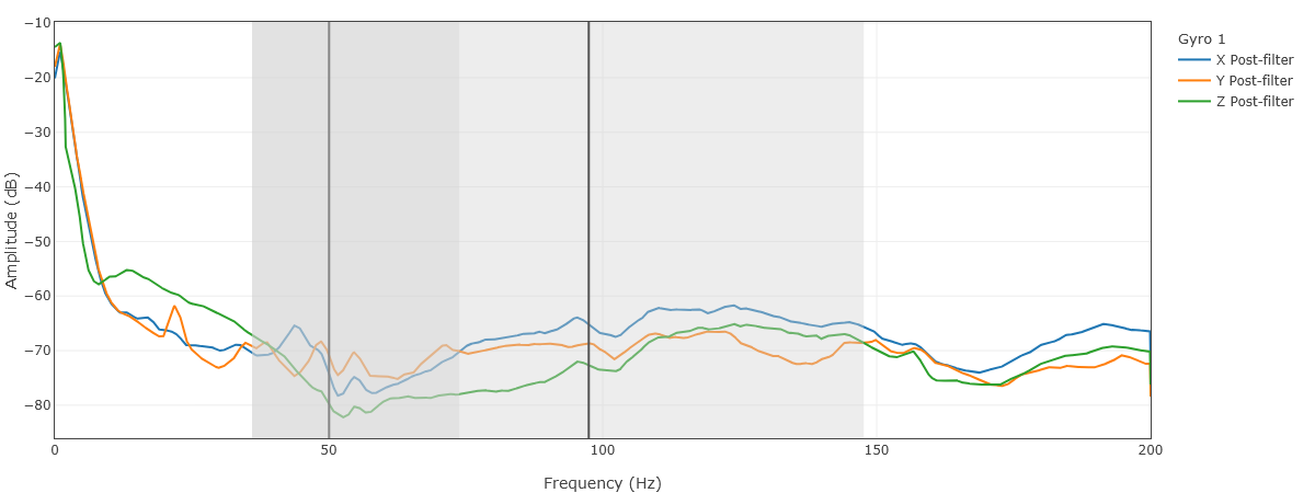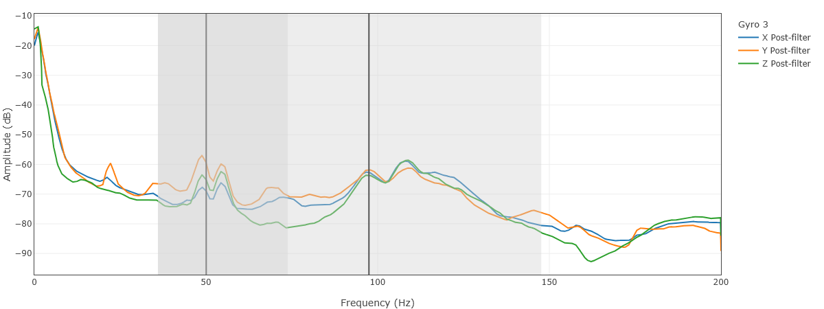 Regarding the imus, IMU[0] and IMU[1] are suspended in a foam insert designed to dampen vibes somewhat, while IMU[2] is hard mounted as a “ground truth” IMU (meant to tell you what your frame is experiencing at the location of the flight controller. Observe:
