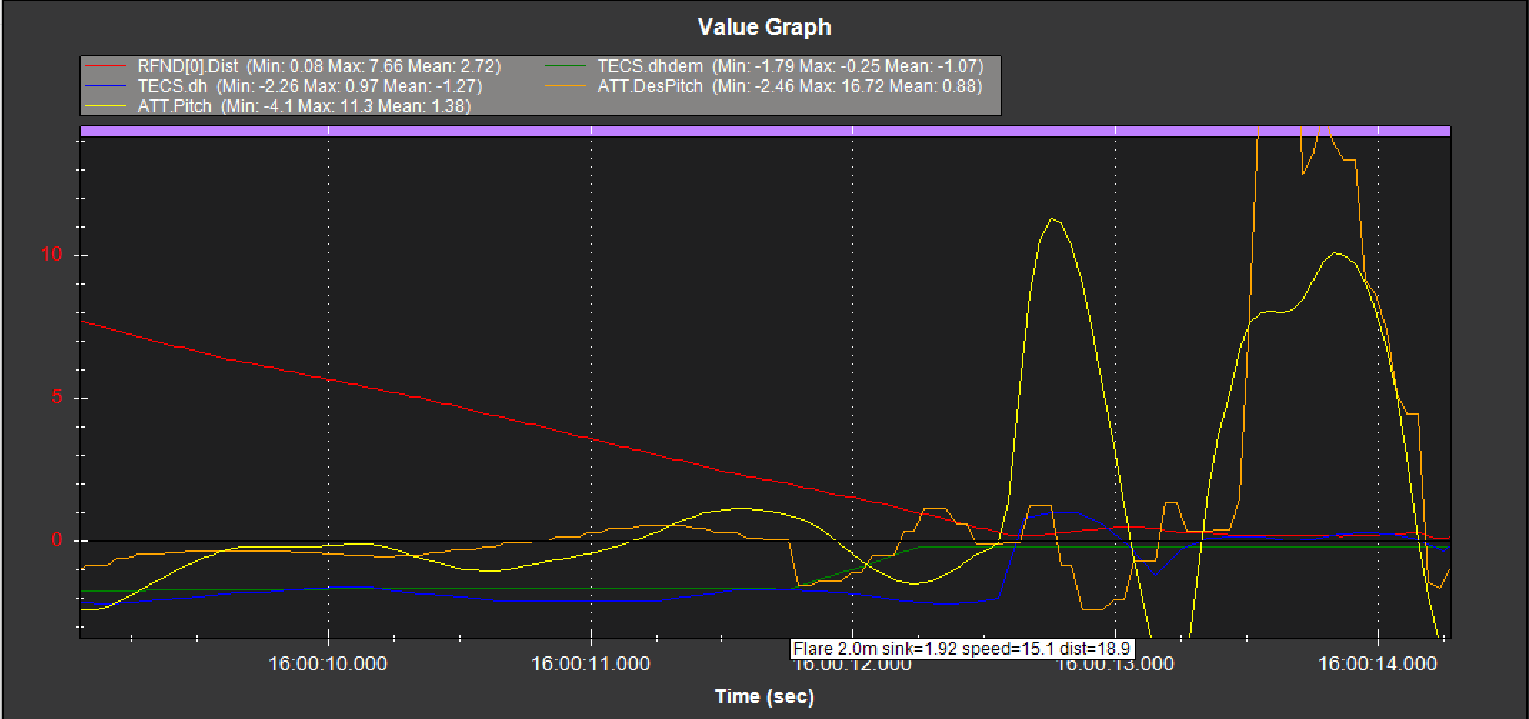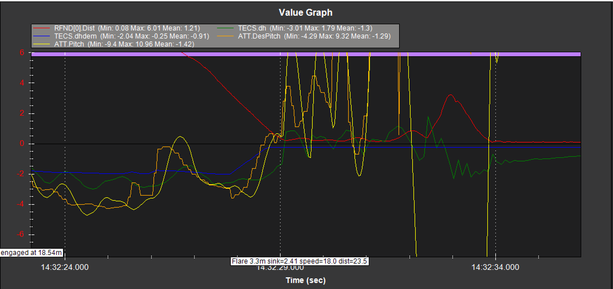 and I also found when the flare start, the ATT.DesPitch jump down at the same time, could anyone explain what happened ?