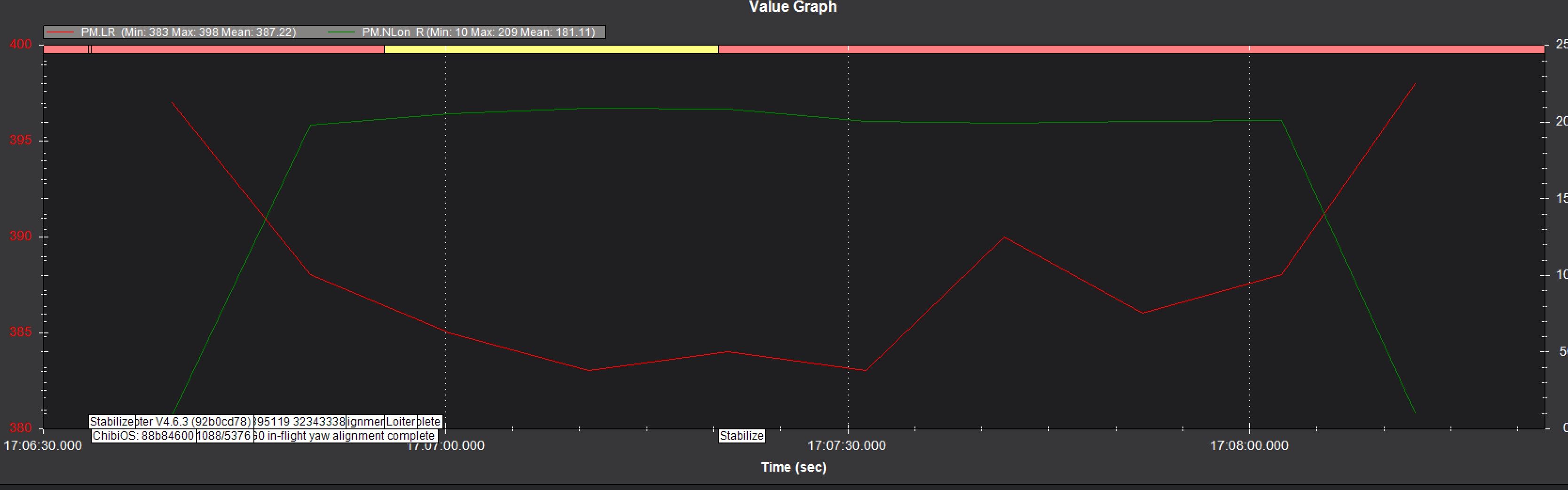 custom build with a bunch of stuff cut out thats not needed for what this quadcopter is about listed below. It looks like PM.LR (Performance Monitoring - Loop Rate) is remaining fairly consistent at 400hz ish so that shows fairly stable. PM.NLon (Performance Monitoring - Number of Long Loops) is not zero but didn’t steadily climb. Is this showing a somewhat stable loop, what is a bad number for PM.Nlon?