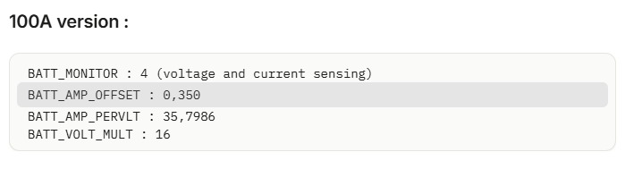 Hello, I am using the Mini Carrier Board PRO v2 for a boat, but when measuring current from Mission Planner, the measurement gets stuck at one value and does not want to go up to its actual measurement. For example, when I accelerate my motor, I read up to 9.7A in Mission Planner, but I am at 25A when measuring with other equipment. I am using the parameters indicated by the manufacturer. Does anyone have any idea what might be happening?