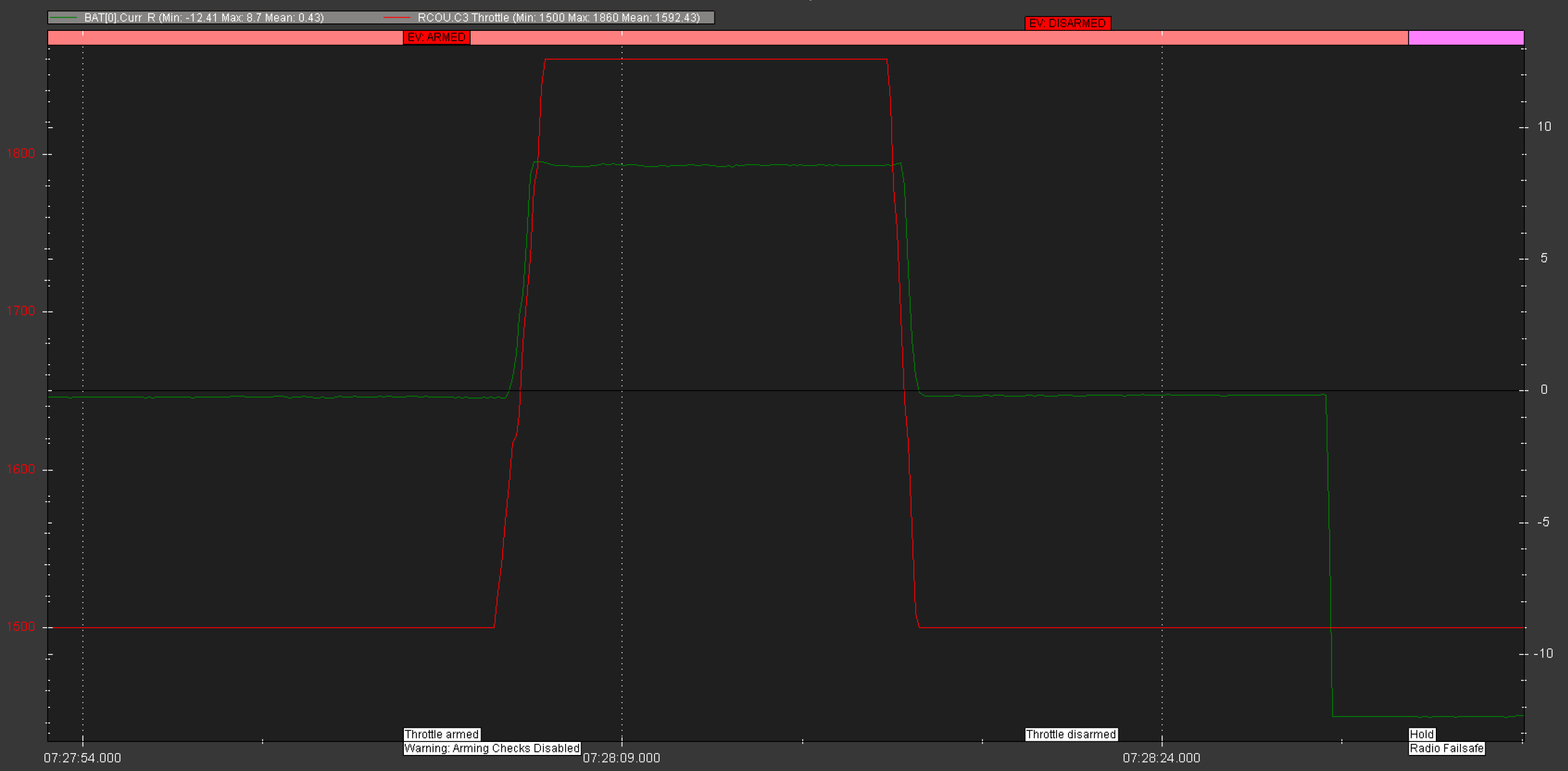 The voltage and current match behaviours given the throttle input in this log.