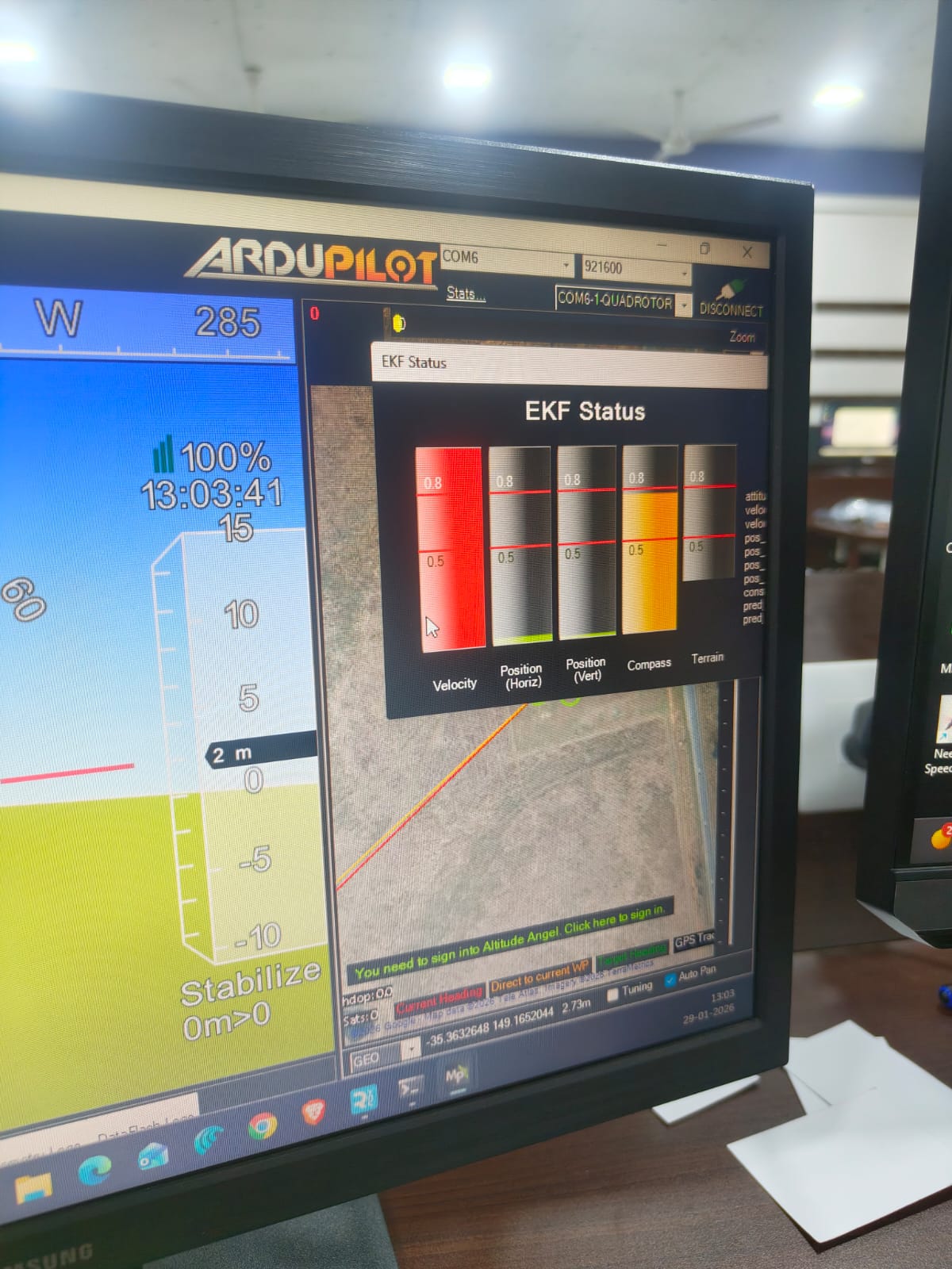 During operation, EKF throws velocity variance errors, and sometimes EKF fails or triggers failsafe