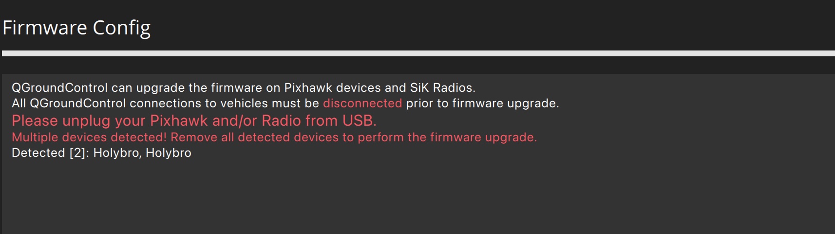 Hello. Im using Mac, qgroundcontrol, with PixHawk6c. I have all the min components I believe set up and ready for me to config and calibrate the PH6. When I launch QGroundControl it will see 2 devices . Pic attached. I believe I can’t seem to configure accelorator because of that. If I launch QGroundControl First and go to vehicle, firmware, then plug it in, the firmware upgrade works. however upon next reboot, I have 2 devices listed again and can’t do anything with it. I have replaced the usb cable, and it is the only device connected to Mac with nothing connected it at all, and zero usb hub in middle.