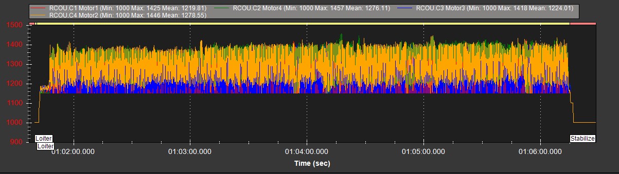 The outputs are oscillating badly from default PID’s, default motor ranges and incorrect vertical acceleration controller gains. Looks like this: