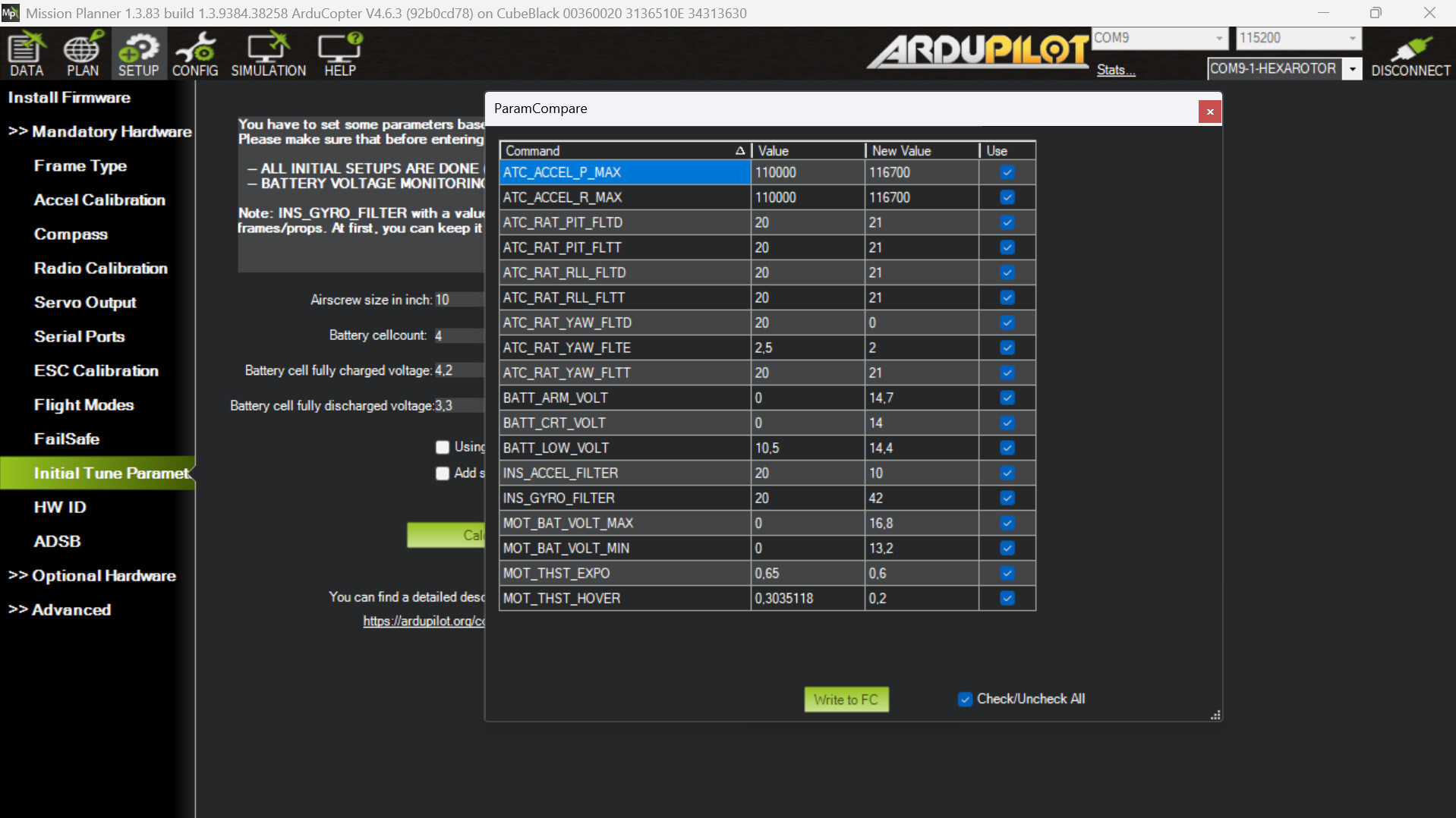 But i can’t be sure of three parameters which are; ATC_RAT_YAW_FLTD, INS_ACCEL_FILTER and INS_GYRO_FILTER.
