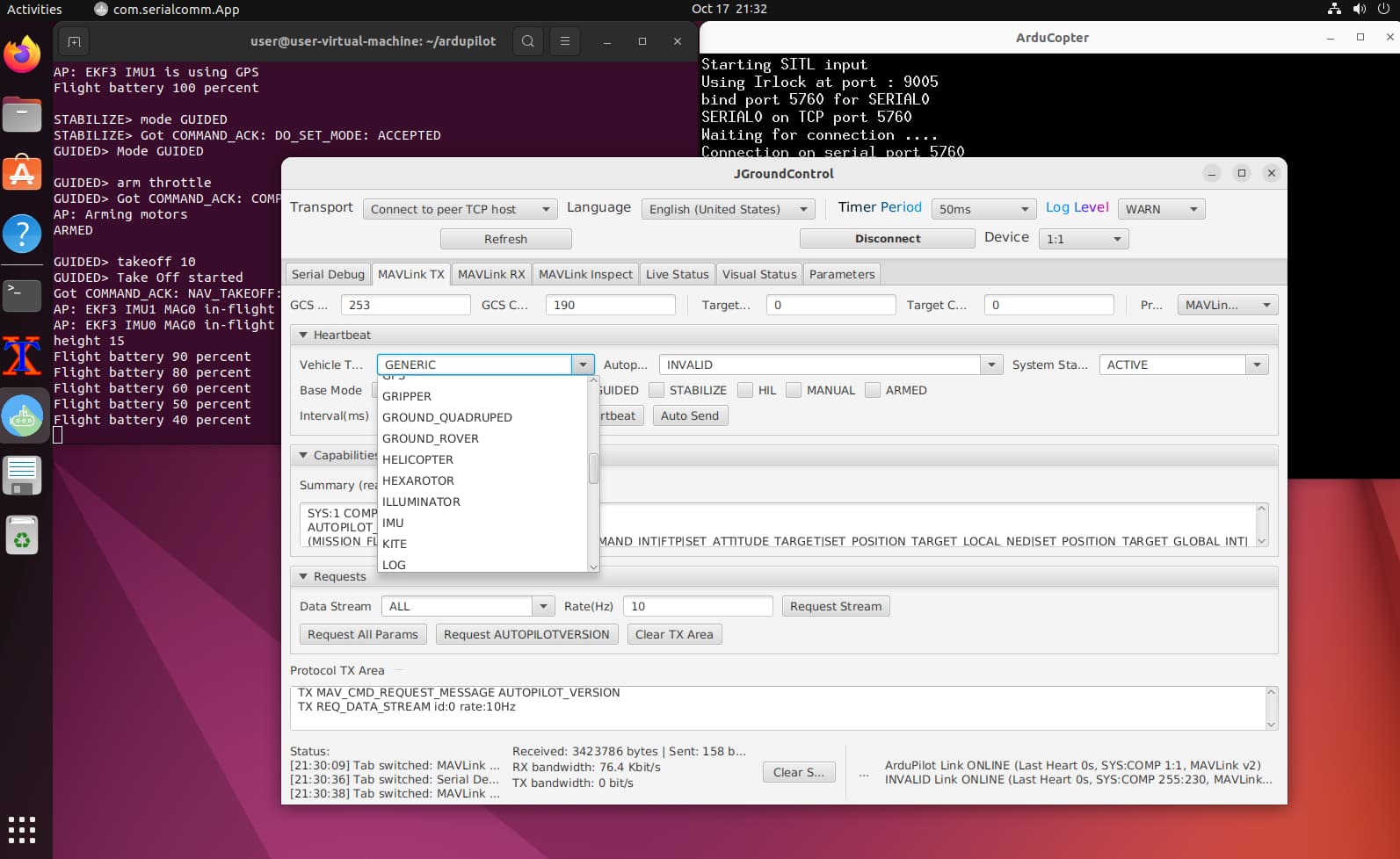 You can clearly see your data and the communication rate between the ground station software and flight control.