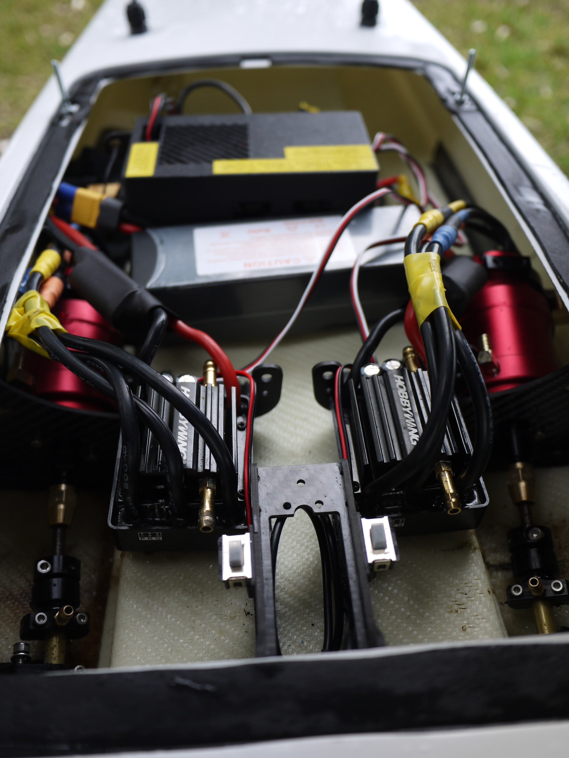 There are no servos or rudders. Turning is entirely skid-steered via two ESCs and two motors. One thing worth flagging early: the motors in these race hulls are seriously powerful. You do not want to open them up at full throttle, and full throttle in reverse is something you want to discover in a controlled setting, not in the field. The precise motor control available through ArduPilot is genuinely useful here as it lets you creep through sensitive habitat at low throttle without the kind of wash that disturbs wildlife or kicks up sediment.