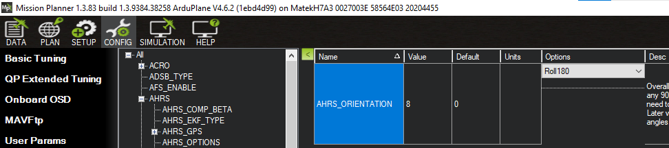 All you need to know is in the link I posted under “alternative orientations”. How do we know how you have mounted the board? Just saying it’s component side down doesn’t define it sufficiently. After you have configured the AHRS_ORIENTATION Parameter correctly use Mission planners HUD to determine if it’s right.
