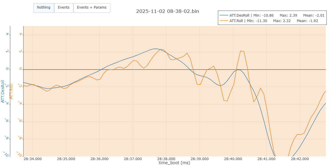 One thing I realised is that I’ve forgotten to setup my ESC telemetry based notch filter. I have the parameters ready to upload but in this flight I’m currently still using throttle-based. I don’t see why this would cause a momentary loss of stability but felt worth mentioning.