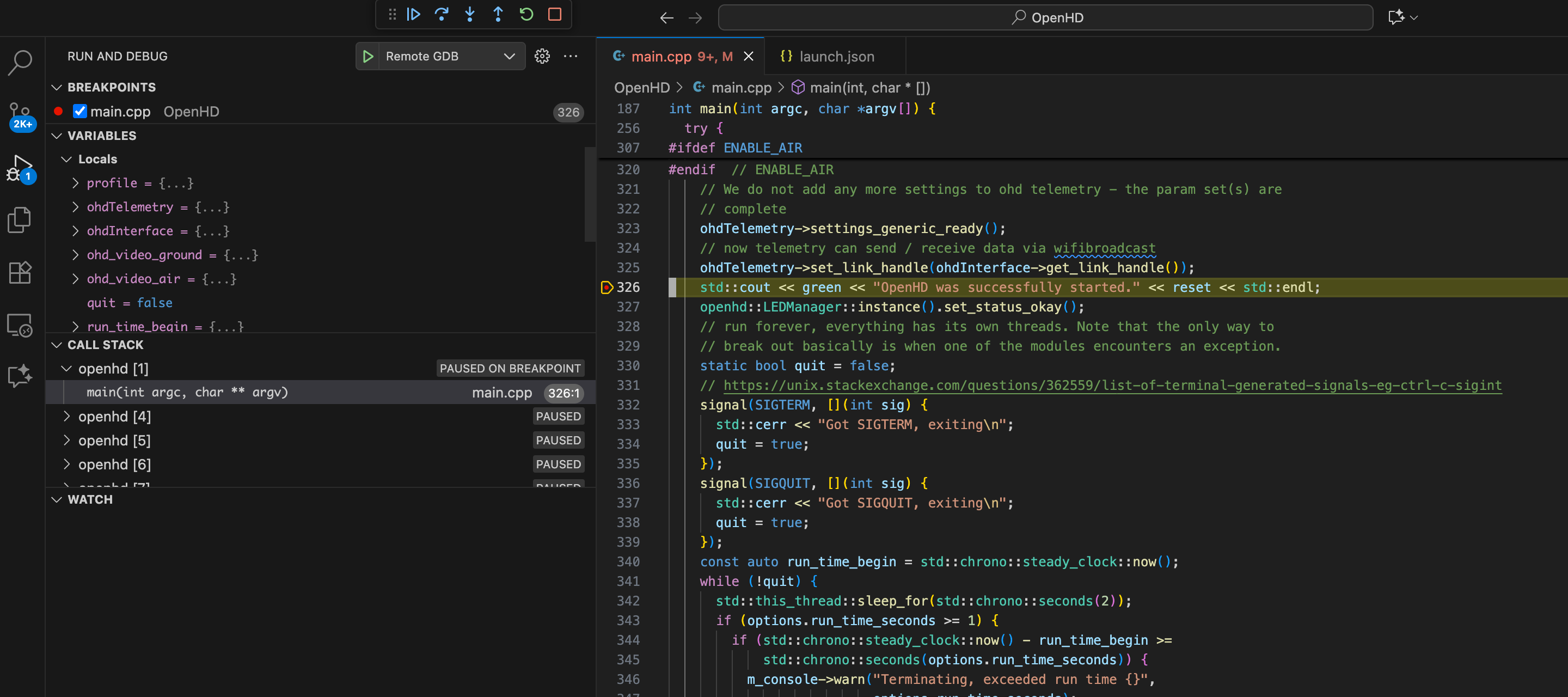 OpenHD has dep install script, so it’s quite easy to setup the build env, I will still coding on my mac and run gdbserver on ubuntu, so I can set breakpoints on my mac vscode