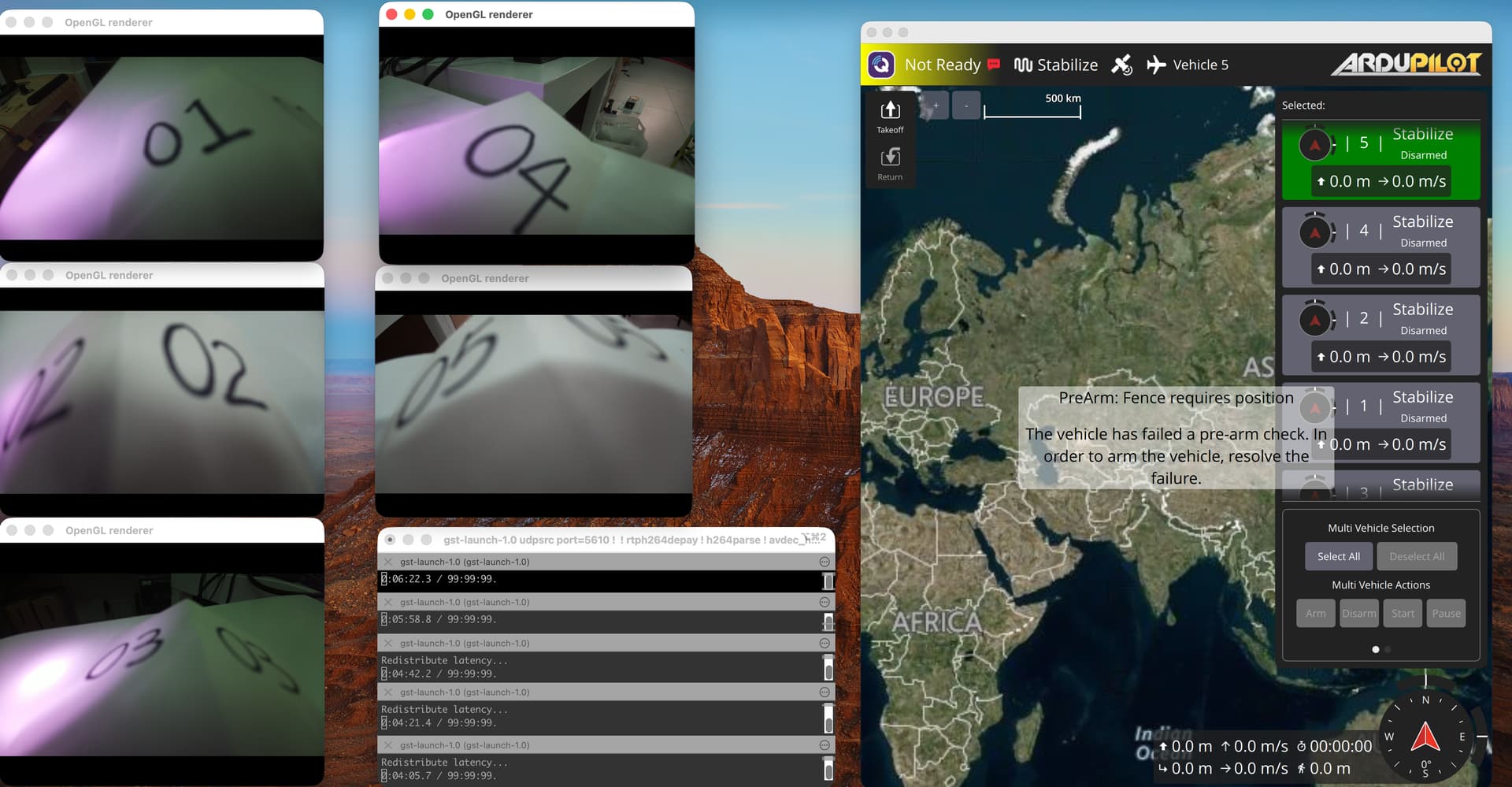 5 group of ArduCopter setup(with SYSID from 1 to 5, Telem port connect to OPENHD air with mavlink protocol)