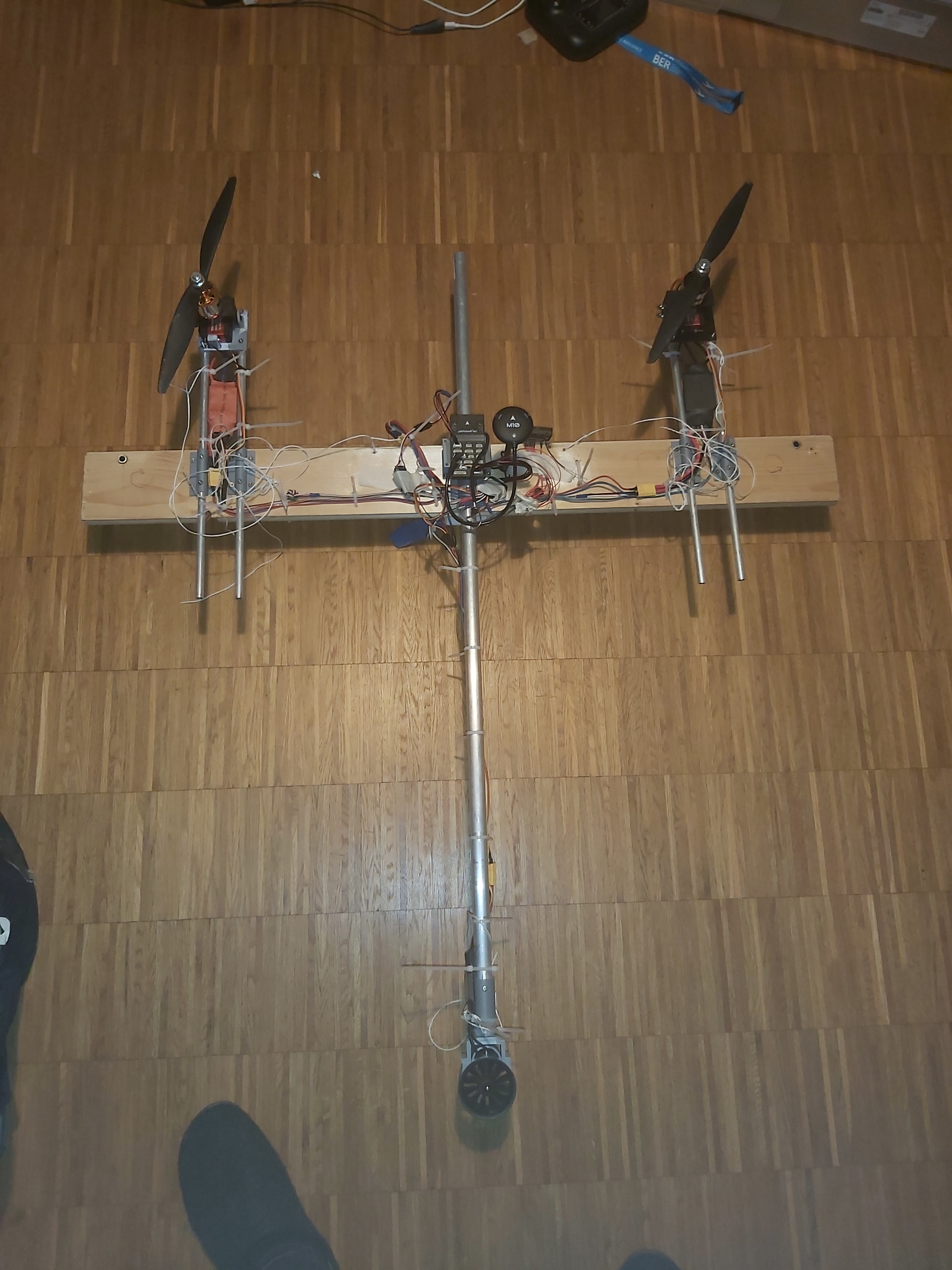 My current project revolves around an ArduPlane tilt tricopter. My frame has two vectorized tilt motors at the front and one fixed motor at the rear. (Attached is a picture of a test aircraft I want to use to try out quadplanes.)