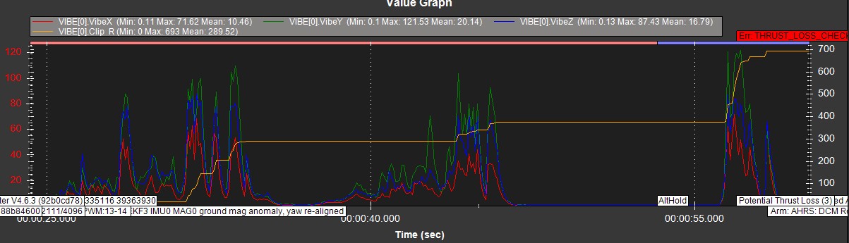 Do you think it could be vibe levels as high as I have seen them, ~700 clipping events and battery sagging to ~3V per cell? Output oscillation and maxed out motor outputs.
