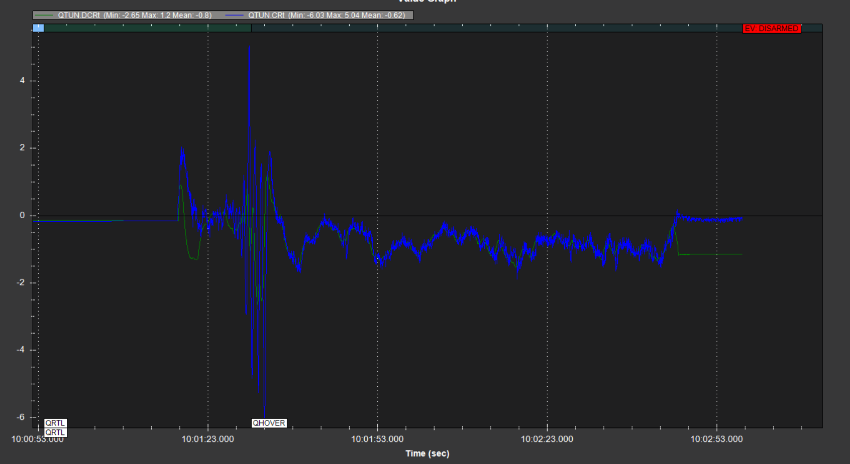 I can upload the .bin log and screenshots of QTUN / RCOU graphs if needed.
