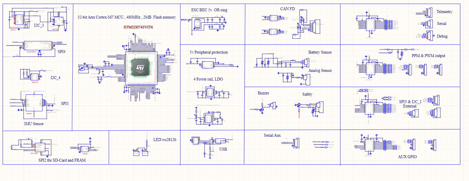 I’m developing a custom flight controller, based on the FMU-V6c. I’d greatly appreciate your feedback on my schematic, pin assignment, and design to ensure compatibility and reliability.