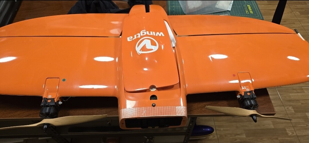 Interesting - that avionics bay is not “Wingtra”… looks like someone has already removed the wingtra autopilot and co-compute unit and hacked a pi and generic flight controller in there.