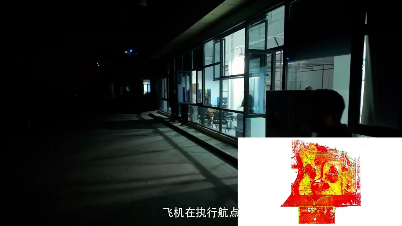 Flying in a forest is tricky because of the thin branches and dynamic lighting shadows. We tuned the fusion to trust Lidar point clouds more when visual features become unstable.