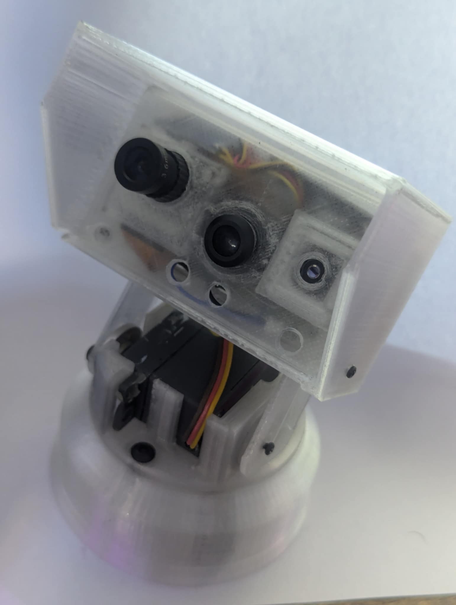 I have designed a version of the gimbal that takes a 28BYJ-48 geared stepper motor rather than a servo I still need to figure out a way if setting the starting position like a switch or remembering where it was when it went to sleep.