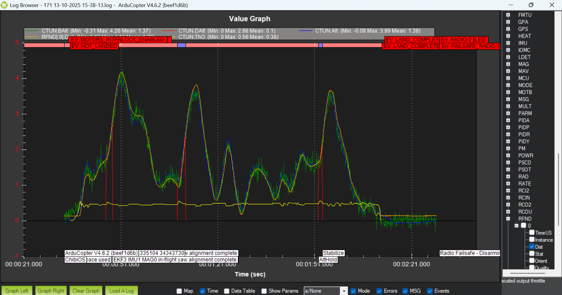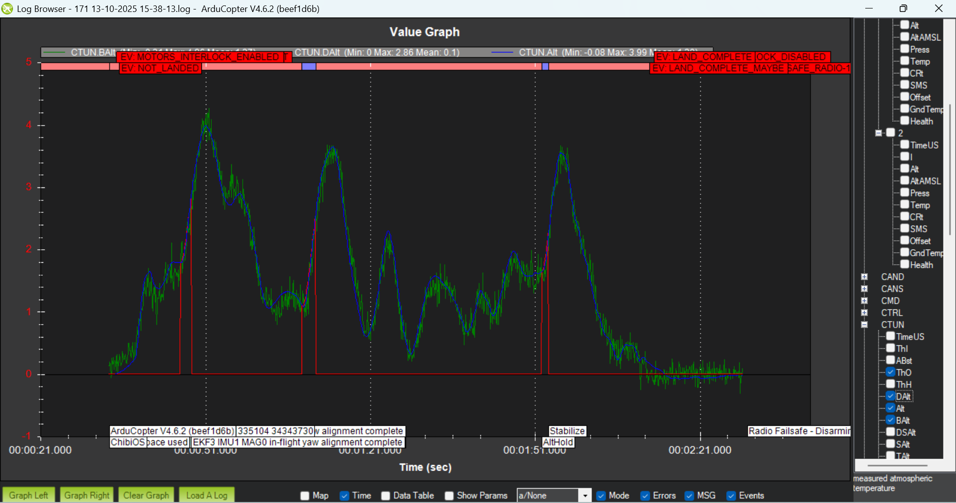 In Stable build 4.6.2 built locally. CTUN’s DAlt still raises when AltHold is enabled but CTUN’s BAlt now tracks that of Baro’s Alt. What could be the issue in configuration. Please note, have added TF02 RF with this setup.