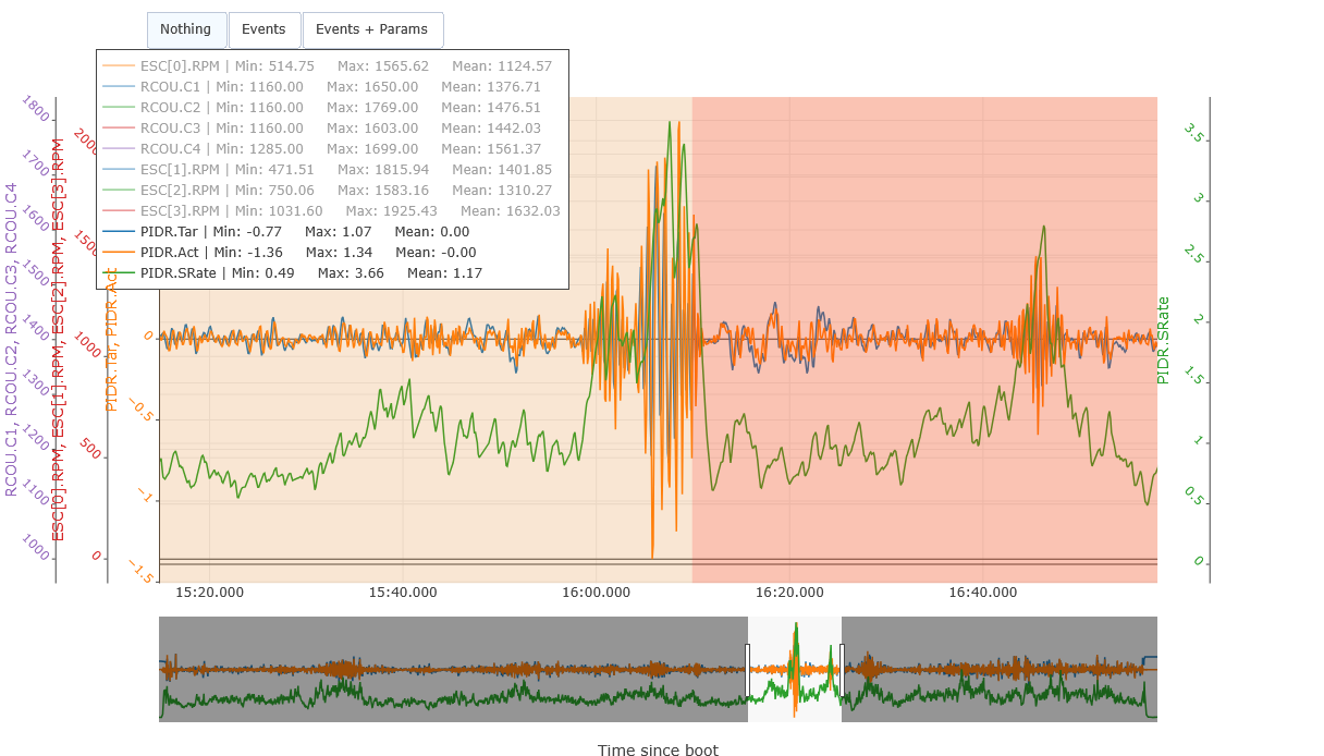 Since your craft has experienced excess control activity in flight, you should have a good baseline on where to set your ATC_X_SMAX parameters, detune somewhat, and go from there.