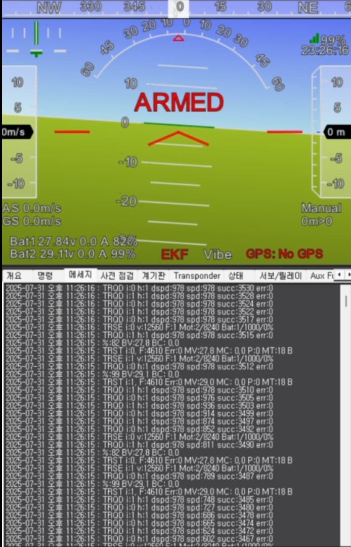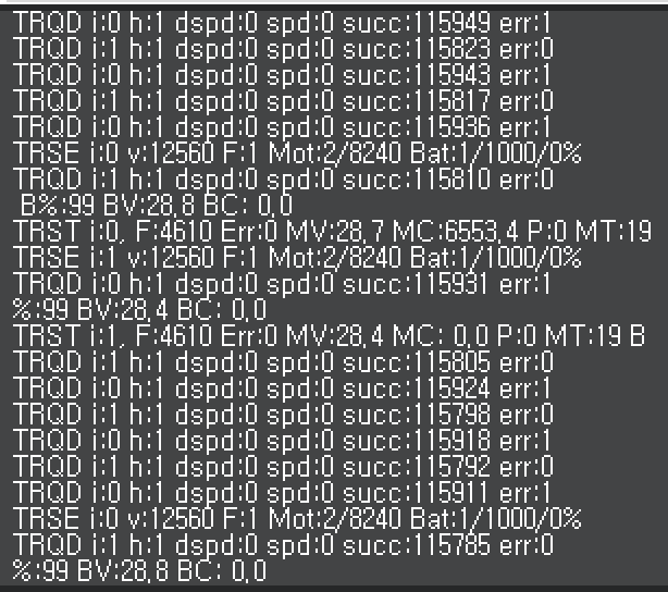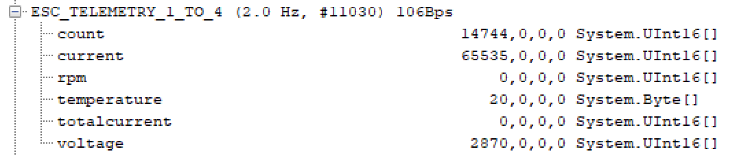 As shown in the picture, communication appears to be normal, and it seems that throttle commands are being sent via the RC. However, the dspd value does not change even when I increase the throttle.