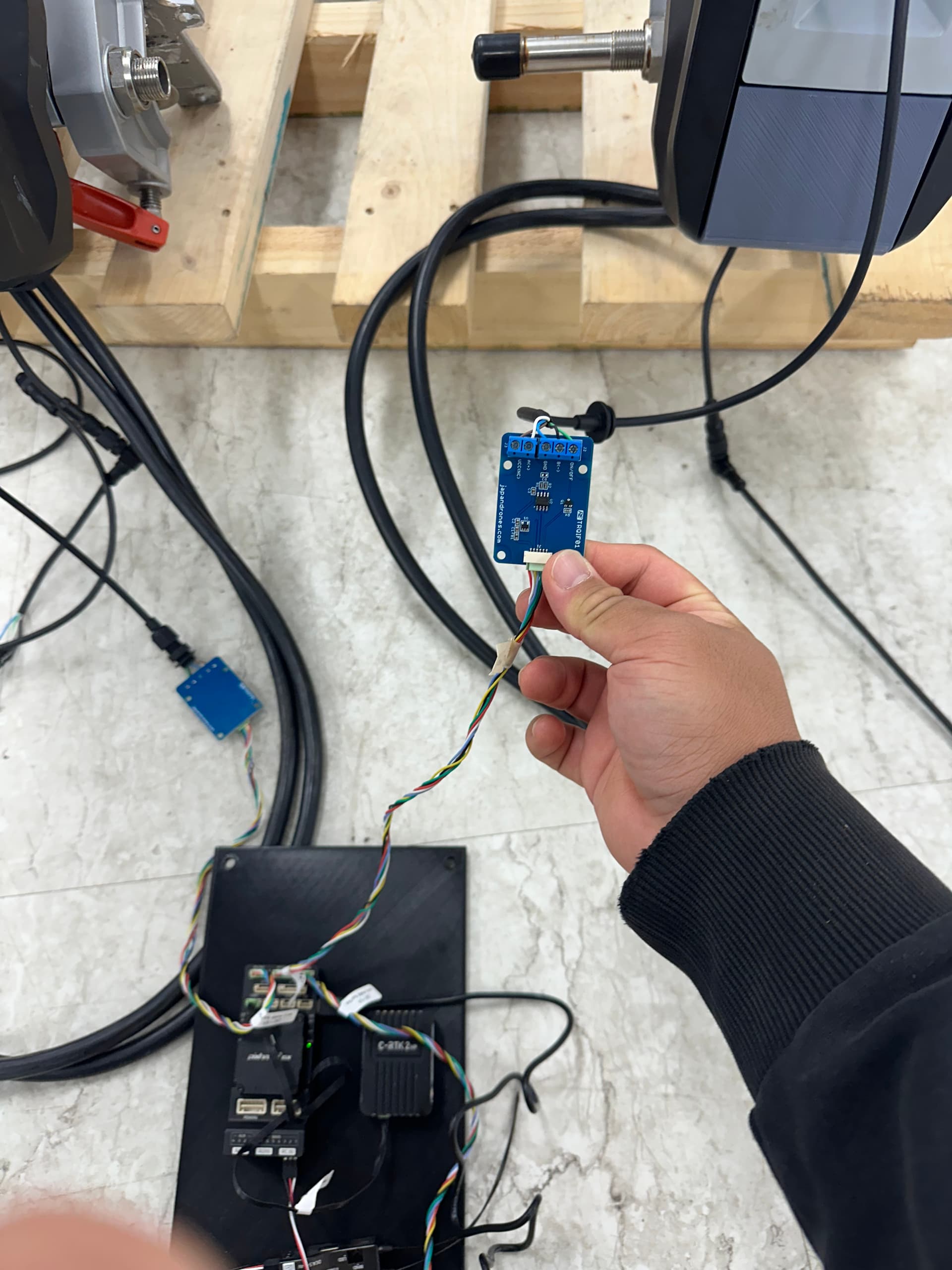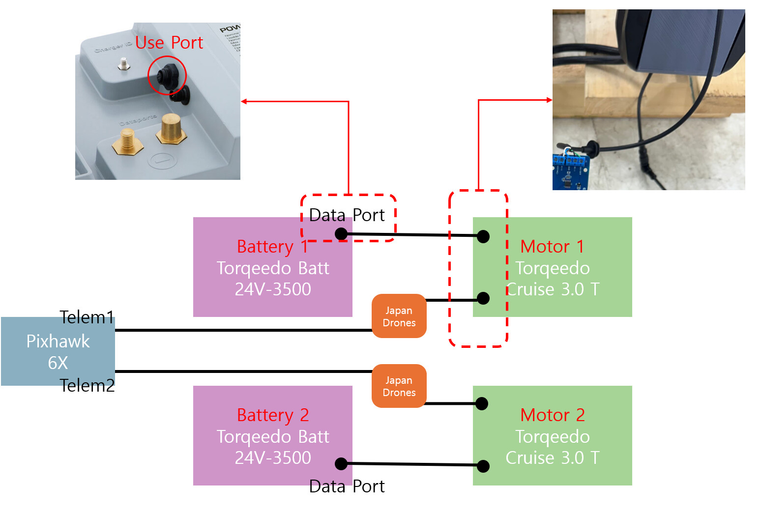 I plug the Tiller connector of each Cruise motor into a Japan Drones RS-485 converter board. The converter’s UART is connected to the Pixhawk TELEM port.