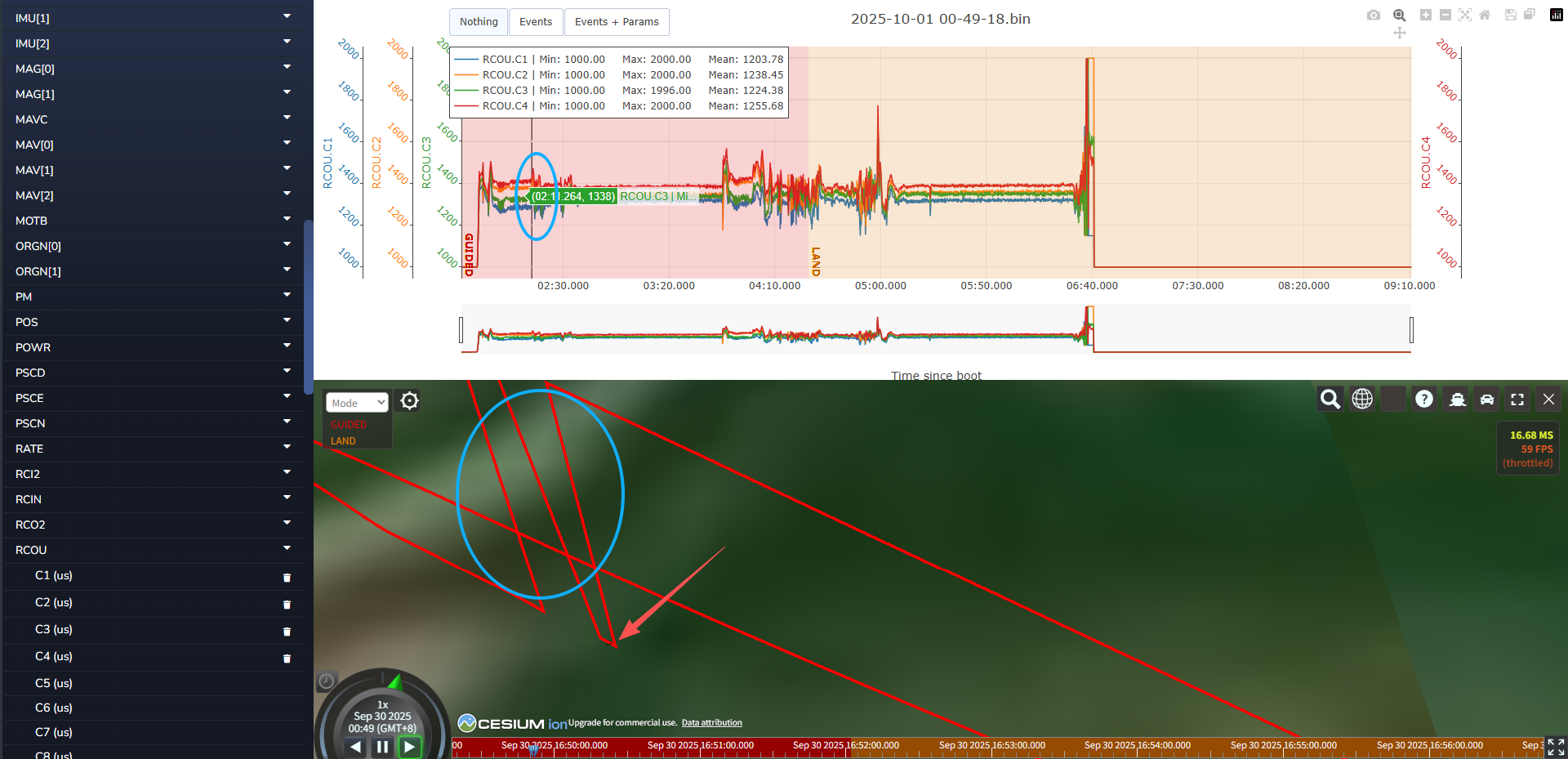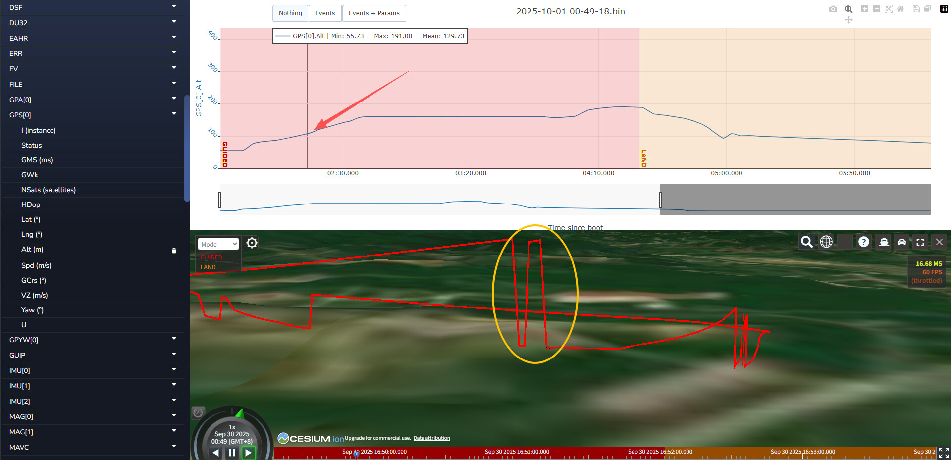 This is my quadcopter, running ardupilot 4.4.5 firmware. I’m flying in guided mode. The onboard computer keeps sending speed and position guidance commands to the drone. However, during the position guidance process, the log shows a sudden change in altitude, but this is not reflected in the data. At the same time, the drone’s throttle also suddenly changes. What is the reason for this?