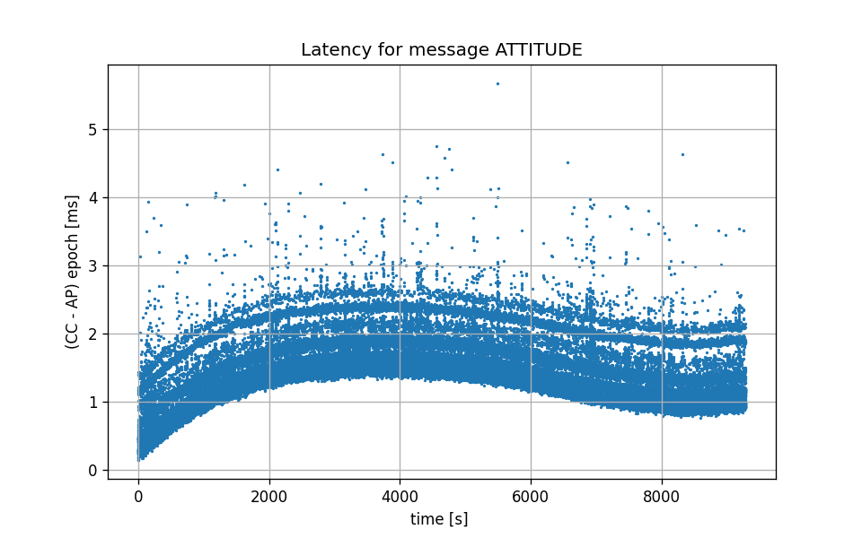 Therefore I created a linear function to compute the AP_epoch using CC_epoch and AP_time_boot (AP_epoch = a * AP_time_boot +b). Basically a mapping between the the two system clocks. I did this because I was curious to see if all the mavlink messages had a similar delay as those 2ms reported by the timesync protocol.
