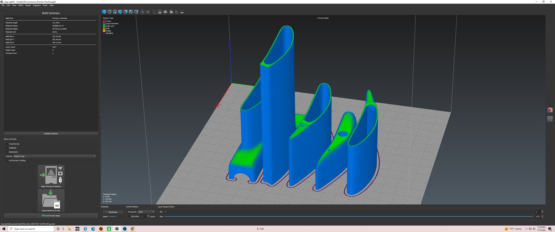 I am using Qloiter, FBWA and Manual flight mode in the simulation. Having good results with waypoints. last night printing the VTOL at 50% before the full-size print. Lot of energy has been directed to tuning, I decided to use VTOLQuicktune.lun to smooth out the flight.