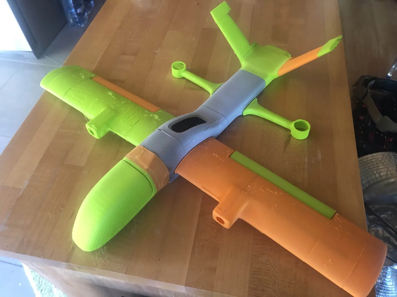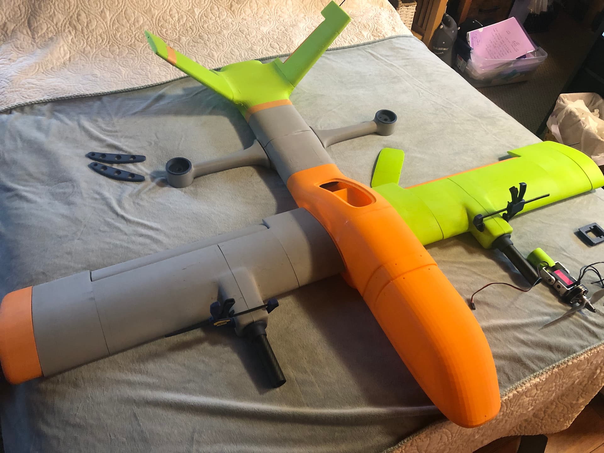 Making some head way on the new VTOL. I printed webs that hold the Carbon fiber 16 mm tube that run the length inside the wing. Full size shown.